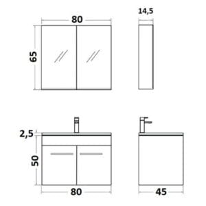 Καθρέπτης μπάνιου με κρυφό ντουλάπι, 2 πόρτες και εσωτερικό αποσπώμενο ράφι. Διαστάσεις: 80*14,5*65 εκατοστά.